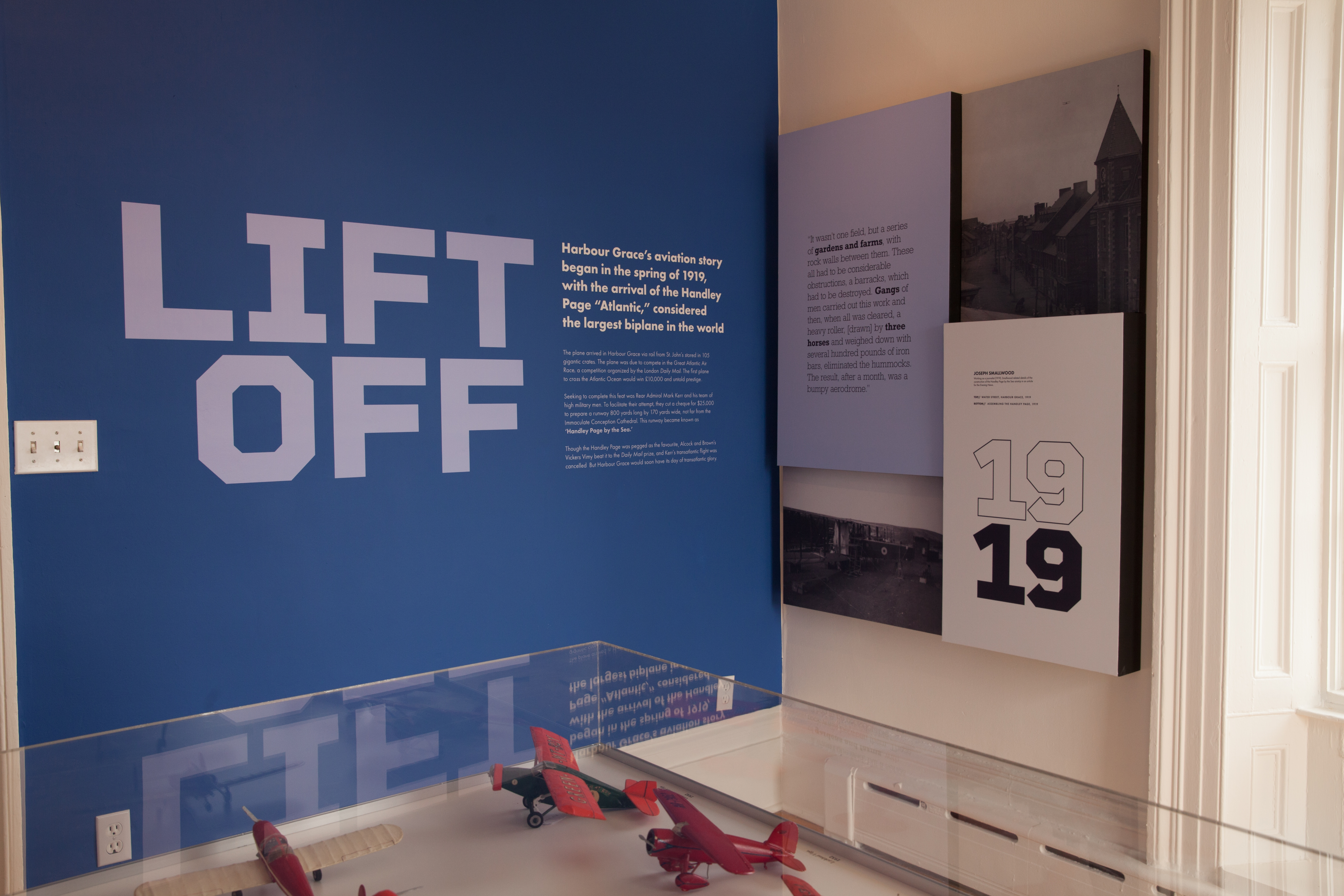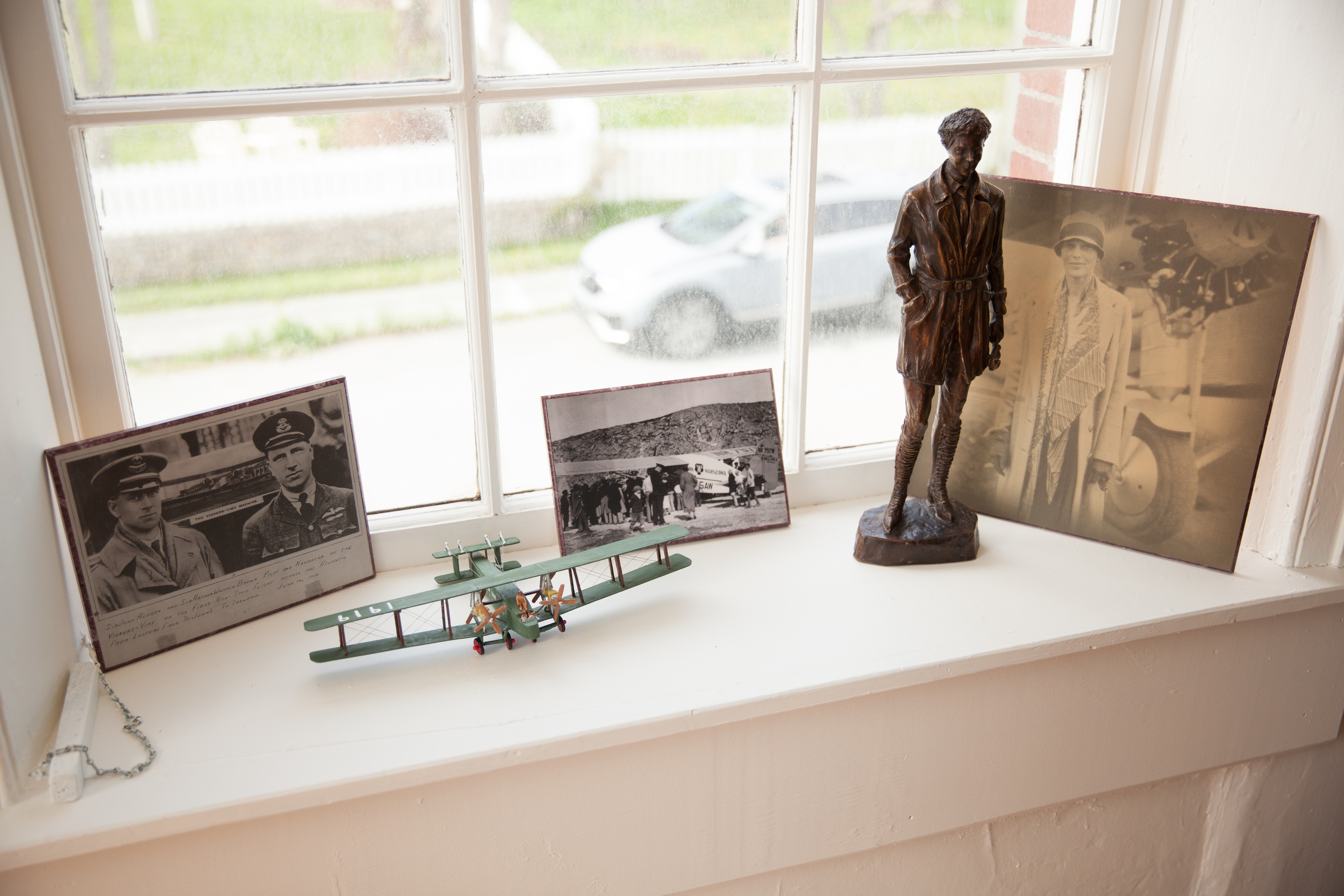 Fully renovated and revamped in 2022 for the 90th Anniversary of Amelia Earhart’s solo transatlantic flight, the Aviation Room showcases Harbour Grace’s unique history of aviation. Twenty planes utilized the Harbour Grace airstrip (built in 1927) for this pursuit, some successfully, some unsuccessfully. The room contains replicas of each individual plane (constructed by David Williams); historical pictures; a hanging model of the Handley Page Atlantic (1919), the first plane use Harbour Grace for a transatlantic adventure; and the Harbour Grace Airport Trust Company’s logbook, featuring Amelia Earhart’s original signature and flight specifications, and a lengthy discussion of Erroll Boyd and Harry Connor’s time in Harbour Grace. This room is often considered the prize showcase of the Museum, containing some of its most priceless artifacts. The windows offer a beautiful view of the harbour, too.