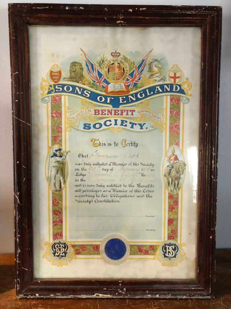 • Artifact Profile No. 1: Sons of England Benefit (Benevolent) Society Ceremonial Altar & Certificate (2019)